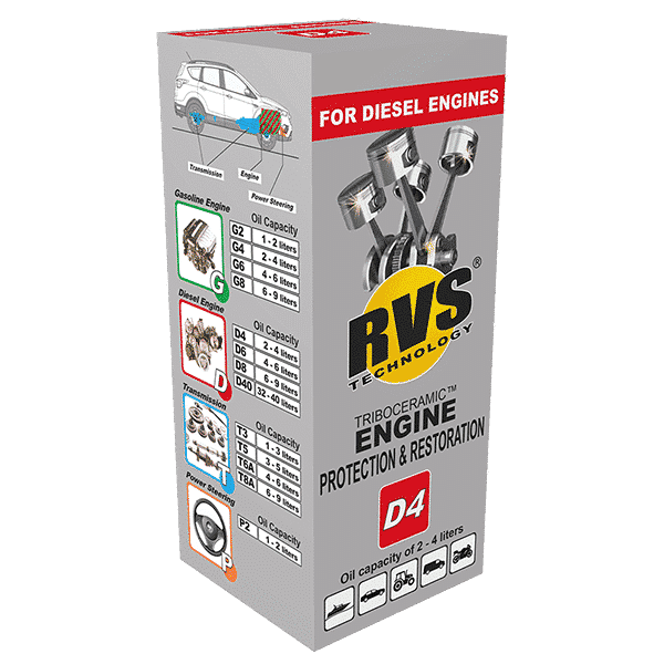 | For Diesel engines | RVS TECHNOLOGY® for four-stroke diesel engines Improve the economy and durability of your vehicle while you make it environmentally more friendly. RVS TECHNOLOGY® protects surfaces and equipment from wear. As the friction reduces, the energy loss is reduced. This leads to reduced emissions and improves engine operation. The engine becomes long-lasting and economically effective. The treatment is easy to carry out by yourself: