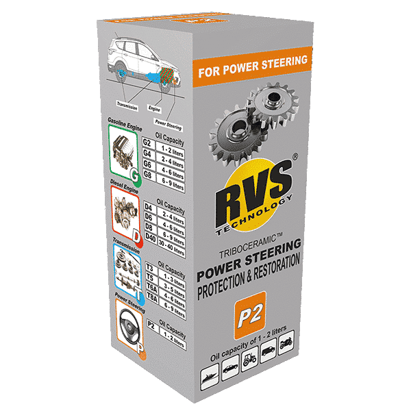 | For power steering | RVS TECHNOLOGY® for hydraulic power steering Improve the usability of your vehicle very easily. RVS TECHNOLOGY® protects surfaces and equipment from wear. If the steering feels stiff or makes noise, you can improve its operation yourself. Introduce the RVS Power Steering Protection & Restoration product into the oil reservoir of your power steering system and turn the steering wheel from one extreme position to the other. After the treatment, the steering becomes light, accurate, and noiseless. The product suits power steering systems with oil capacity up to 2 litres (2 qt.). Attention! Not suitable for electric power steering. Note that the product affects only the power steering unit. If the steering has other problems, the product has no effect on them. Using the product is not badly spent money in any case as the pump becomes more durable after the RVS treatment. | 30,90€ | ||