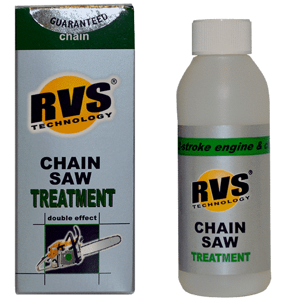 | Chain Saw Protection & Restoration | RVS TECHNOLOGY® for small machinery Make your small machinery last longer. RVS TECHNOLOGY® is certified to protect surfaces of mechanisms from wear. Chain Saw Treatment that is designed for treating chain saw engines and chains contains a 90-ml bottle of RVS substance and special oil. The contents of the bottle is sufficient for treating one chain saw engine and one chain or, alternatively, two chains. The package includes the appropriate amount of RVS substance for treating a normal, “family size” chain saw, i.e. the 2-stroke engine, the chain, and the bar of chain saw. Alternatively, it is enough for treating two chains and bars. One half of the content is used for the engine, the other for the chain and the bar. Note that you can use Technology® 2-Stroke Engine Protection & Restoration for treating 2-stroke engines of motorcycles, mopeds, outboard motors, snowmobiles, lawn mowers etc. For treating small 4-stroke engines, you can use the G2 product. | 23,90€ | ||